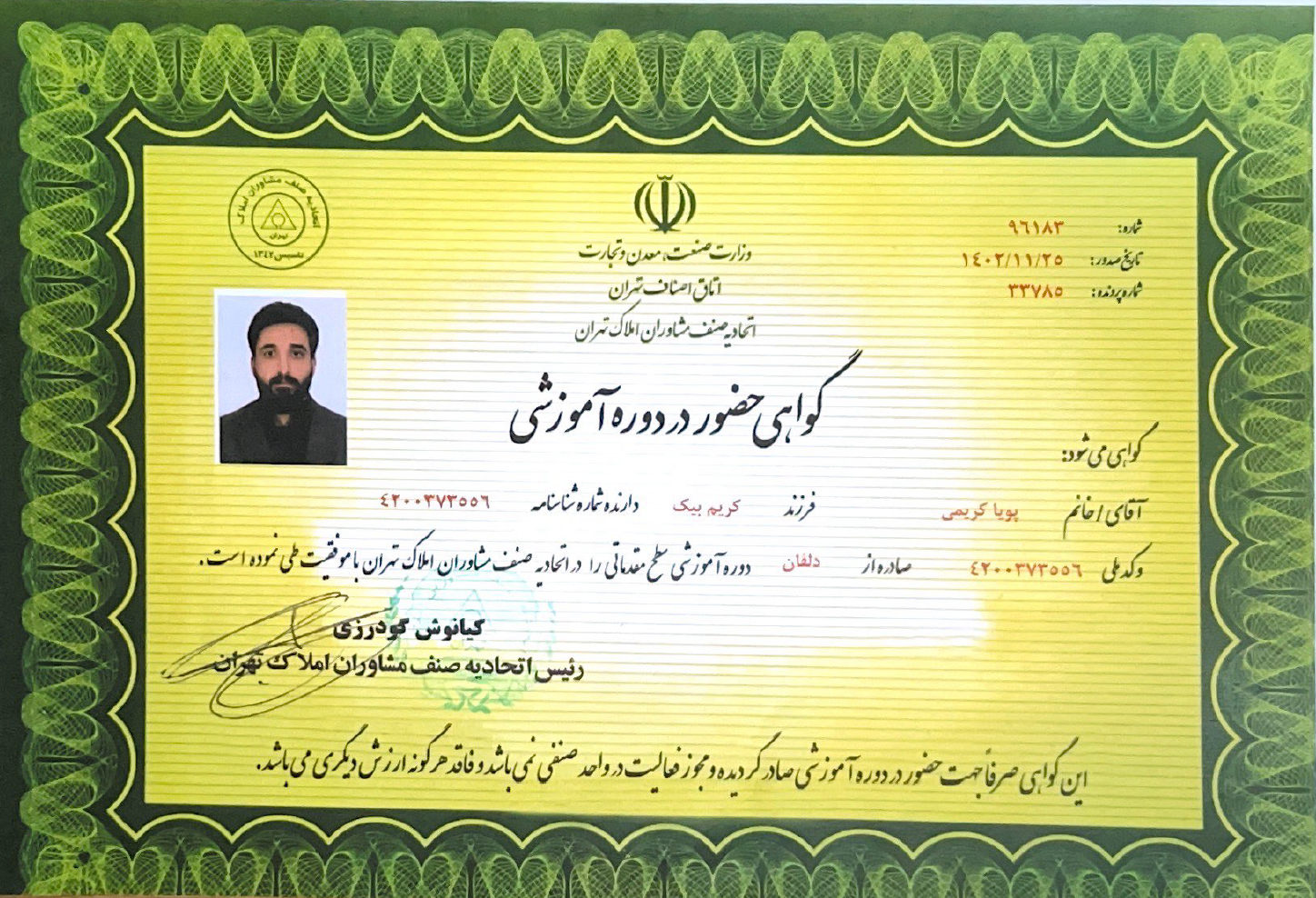 گواهینامه و مجوز های گروه مدیریتی املاک ایران
